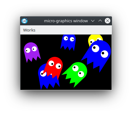 Tato funkce vytvoří okno, jehož pozadí je černé a slot shape obsahuje instanci picture se zadaným počtem duchů. Tito duchové: